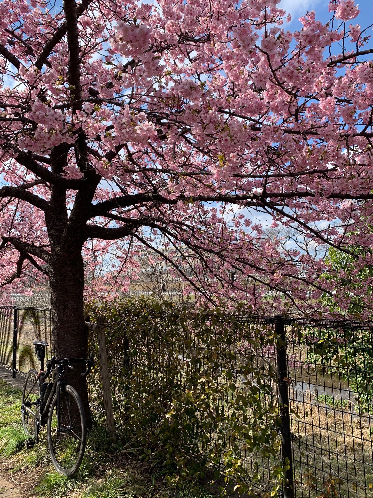 帰り道の空堀川では河津桜が満開でした。