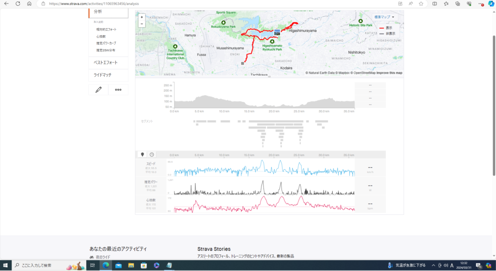 多摩湖を周回しながら徐々に心拍を上げていき、アップ完了。