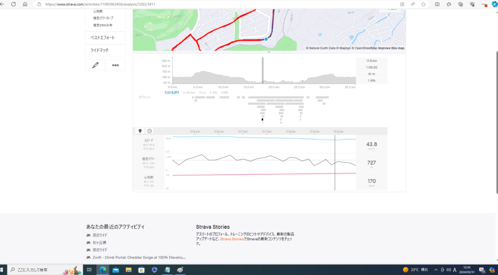現在パワメの調整が出来ない状態なのでStrava推定値ですね。