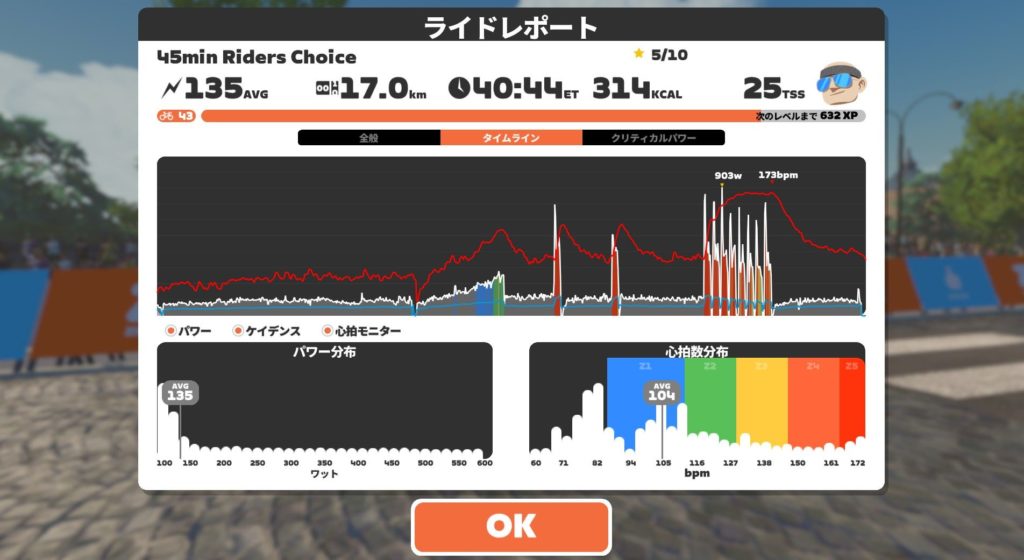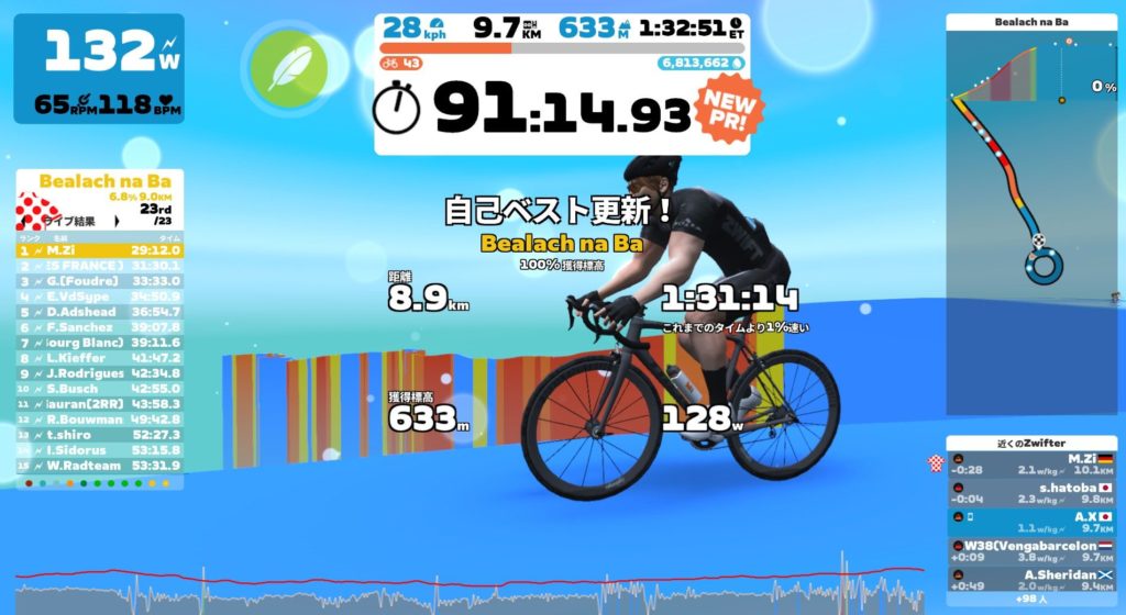 9日(火)Zwift(高強度ワークアウト)